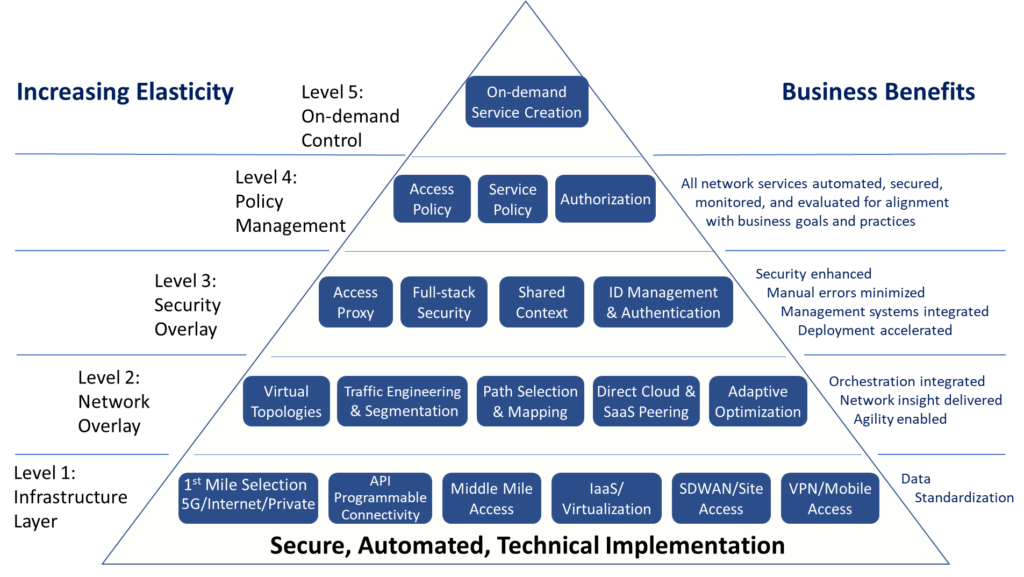 The latest iterations include MEF 70: SD-WAN Service Attributes and Framework published in 2021. This developing standard defines the externally visible behavior of an SD-WAN Service based as an agreement between an SD-WAN subscriber (buyer) and a service provider (seller) agreement on the values of a set of SD-WAN service attributes.