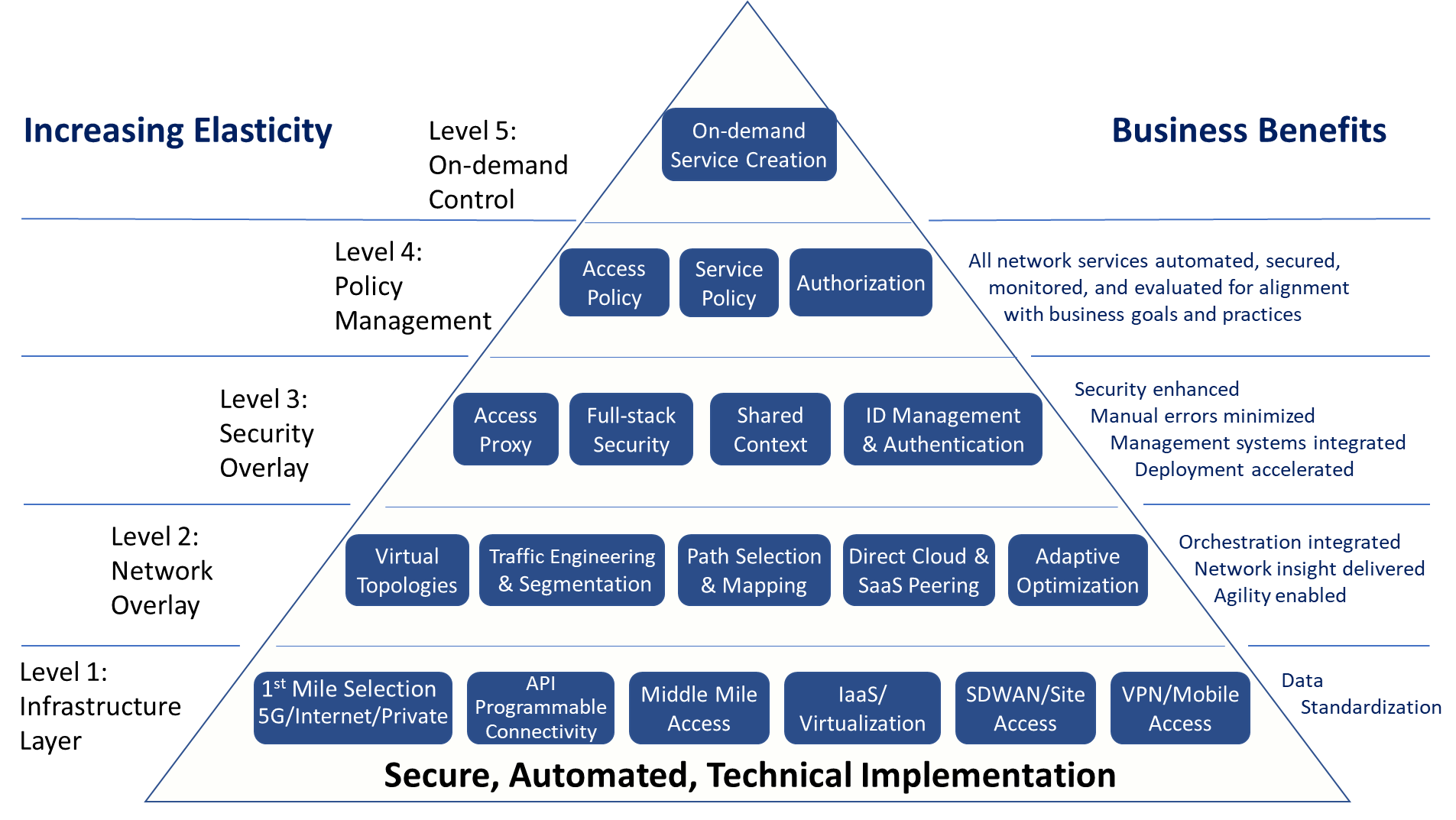 From an end-user’s organizational perspective, particularly larger enterprise and government bodies, the focus is on business agility, cost, scale and, of course, security. This is an important topic for the Open Networking Group (ONUG. net). ONUG represents the voice of the enterprise providing that community with guidance on the evolving network cloud. The Network Cloud Working group, of which this author is a member, recently published a layered business Network Cloud Playbook is driven by business policy as shown on the right and is intended to be capable of being able to replace network elements and infrastructure as dictated by changes in policies and on demand. It ties back to this article’s theme that the network journey is never complete but in a constant state of migration. Its intention is to empower enterprises and businesses in general to choose an infrastructure that supports their unique business requirements.