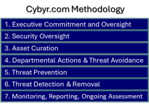 - We will disappear the common blind spots of lack of awareness of threats and the holistic scope of cybersecurity that cause most problems. Cybyr.com’s methodology will cover executive and security oversight, asset curation, threat avoidance by business function, threat prevention, detection and removal, monitoring and reporting.